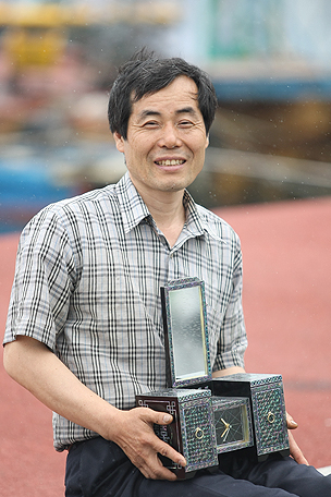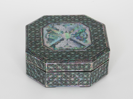 작품설명: 능화형칠반에 동선을 꼬아 당초줄기로 사용했던 고려, 조선초기재료(옻칠,자개)기법과 문양을 그대로 재현하였다...